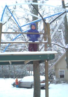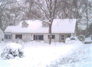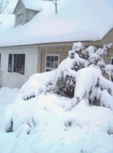 Well, we've had a 100 year snowfall today (1/25/2000). Last week schools were closed 3 days (and Monday was MLK day) due to a paltry 3 inches of snow Tuesday, and another inch Wednesday night, but THIS Tuesday we have about 15 inches in our yard. Now that's a significant snowfall even in Port Jervis. Anyway, here are some pictures: