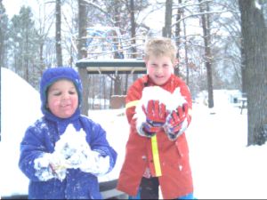 Asa and Carol baked a batch of chocolate chip cookies during Sunday's ice storm, and miraculously, we haven't eaten them all yet, so it's a nice munchie to have on this wintry day, too. Luckily, we had bought the boys snowsuits for 50 cents each from a Philly thrift store at Thanksgiving time. We had hopes of seeing some snow this year, but didn't predict four storms in one week.