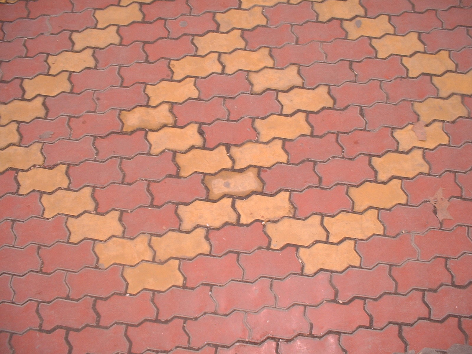 Wuhan Sidewalk (1) A double diamond pattern made of cool angular bricks. This sidewalk is in the city of Wuhan in Hubei province.