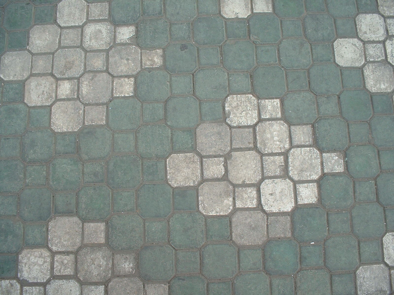 Kunming Sidewalk (6) Another sidewalk in Kunming. This one is made of neat little colored bricks. I don't know if they're fired clay or cast concrete, but they do have the coloring imbedded.
