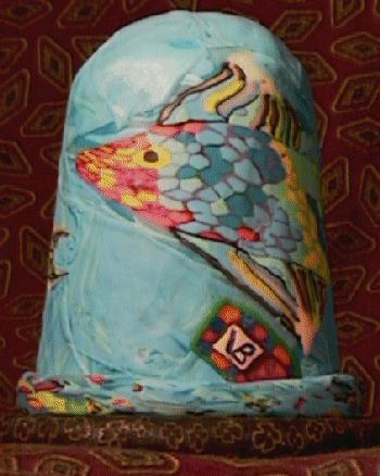 This is one of very few lamps that I've made from Fimo. The translucency (or opacity) of fimo is tough to control, and the edges of canes do not blend as easily as with Sculpey III.