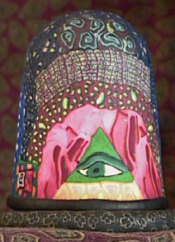I see monks in red robes behind the all seeing eye on this side.